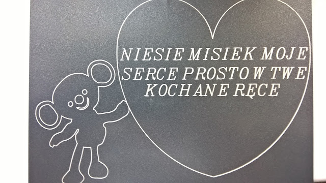 Jak myślicie od kogo taki prezencik dostałam? od córki? od synka? A właśnie, że nie bo od męża :) Jest to metalowa tabliczka, na której wyryto powyższy tekst i obrazek. Podejrzewam, że mąż sam tego nie rył, ale twierdzi, że tak. Wydawać by się mogło, że to dziecinada, taki obrazeczek, ale dla mnie to słodkie, bo wiem, że myśli o mnie i stara się żeby sprawić mi przyjemność :) Oczywiście nie byłam mu dłużna, a że w pobliżu nie miałam blachy i dłuta, to dostał ode mnie takiego mmsa...