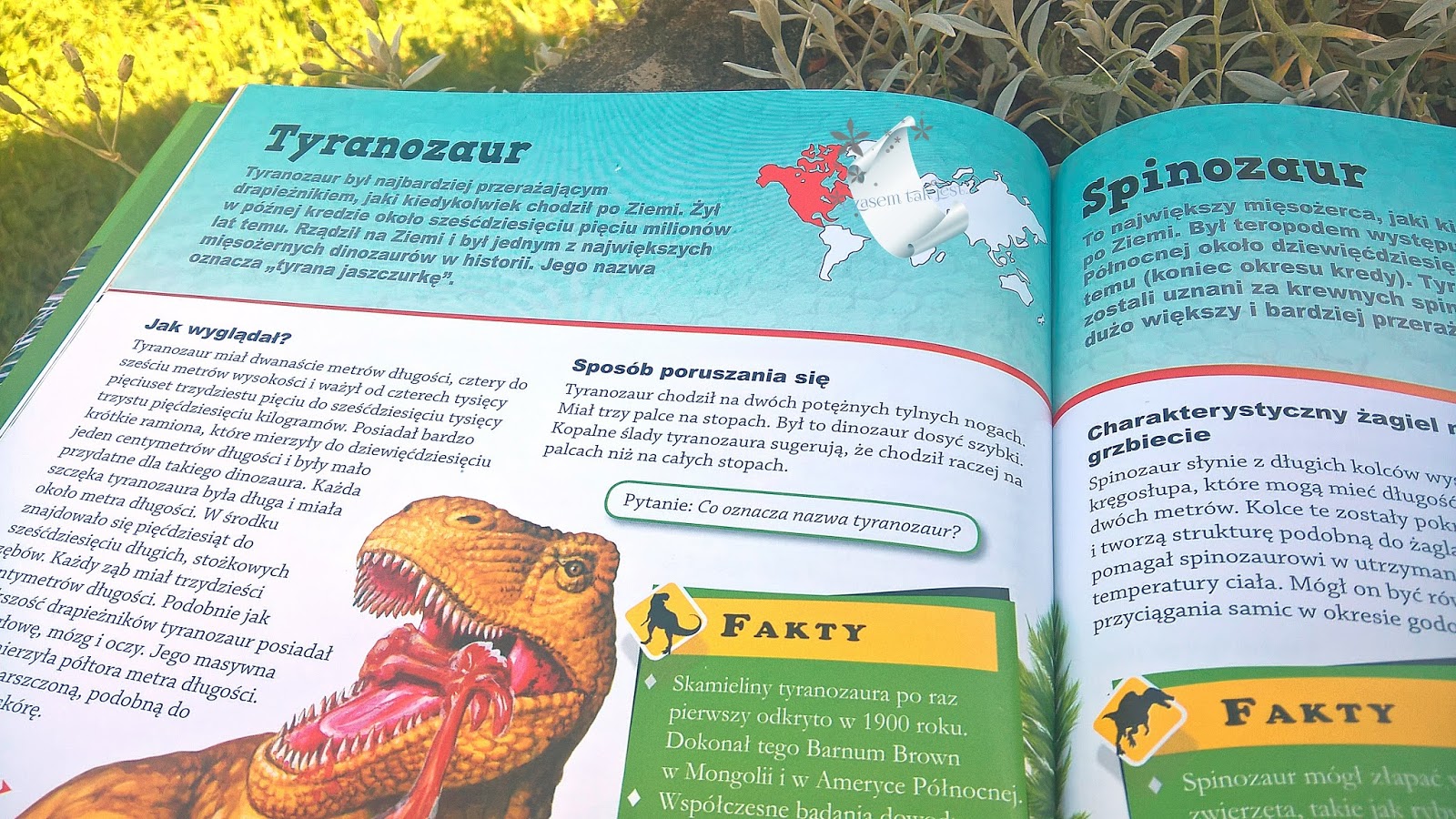 Nasze dzieci, i te starsze i te młodsze są małymi odkrywcami. Jedne odkrywają chęć jaka w nich tkwi same, a innym my rodzice możemy z łatwością to uświadomić, pokazując takie właśnie encyklopedie, które są nie tylko źródłem wiedzy, ale i przyjemności. Nie znam dziecka, które nie usiadłoby z chęcią i nie zaczęło słuchać naszych opowieści o wielkiej rodzinie słoni, małpach człekokształtnych, które podobno są naszymi przodkami, czy o ogromnych dinozaurach. Dinozaury są niesamowicie popularne wśród dzieci, co widać w każdym możliwym parku dinozaurów.